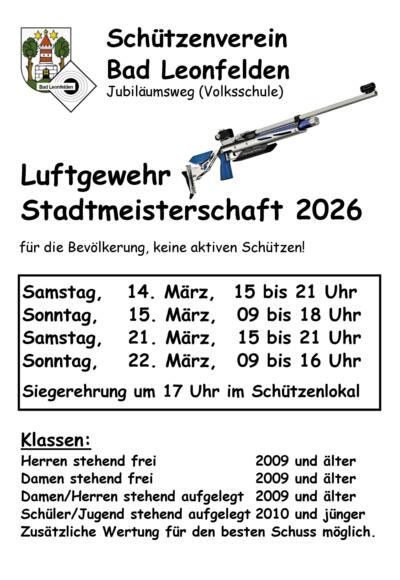 Luftgewehr Stadtmeisterschaft 2026