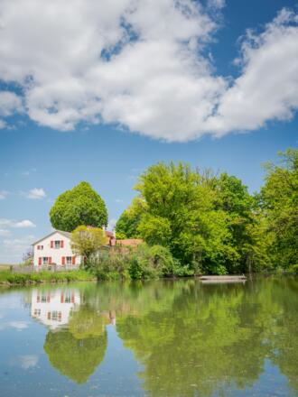 Auf der Rückfahrt Richtung Meinheim fahren Sie auf Höhe von Wolfsbronn direkt rechts auf den Radweg nach Markt Berolzheim. Wenn Sie noch Zeit haben, lohnt sich ein Abstecher zum idyllischen Naturschutzgebiet „Buchleite“, das Sie oberhalb der Ortschaft erwartet. Vorbei an beweideten Halbtrockenrasen und Streuobstwiesen entdecken Sie mit etwas Glück Hauhecheln, Silberdisteln und Enzian. Hier findet sich auch das Naturdenkmal „Sieben Linden“, eine Siebenergruppe von rund 300 Jahre alten Linden. Zurück auf dem Radweg überqueren Sie in Markt Berolzheim noch einmal die Staatsstraße, biegen rechts ab, passieren den Bahnübergang und gelangen rechts wieder auf den Altmühltal-Radweg zurück nach Treuchtlingen.