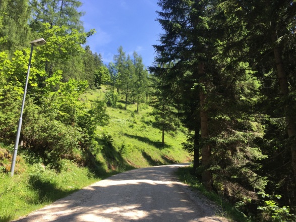 Immer der Beschilderung Forststraße folgen, diese ist mit dem Swiss-Track stetig bergauf, aber gut befahrbar. Gleicher Weg zurück.