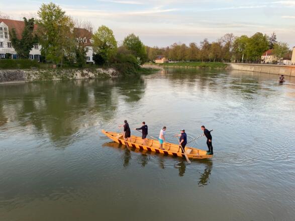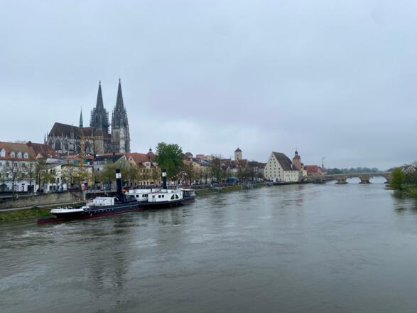 Zuerst machen wir einen Ausflug nach Regensburg. Direkt an der Donau gibt´s die älteste Bratwurstküche der Welt. Aber auch ein Schäufele mit Klos darf nicht fehlen. Es regnet und es fällt uns schwer auf die Räder zu steigen. An Ingolstadt fahren wir im Regen vorbei. Danach geht es bestimmt 10km immer direkt an der Donau entlang - wunderschön. In Neuburg am Stellplatz gibt es Strom und wir können unsere Klamotten trocknen. Abends schauen wir beim Fischerstechen zu - bald ist Fischerfest und es muß noch fleißig geübt werden.