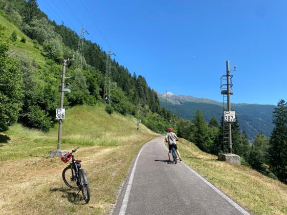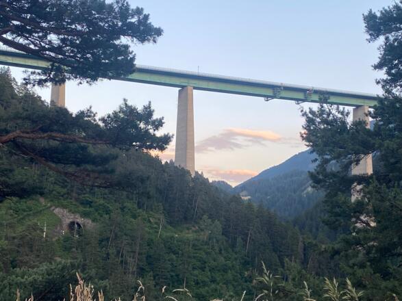 Auf dem Rückweg von Grado fahren wir über den Brenner. Die italienische Seite ist perfekt auf der stillgelegten Bahnlinie mit gleichmäßiger Steigung angelegt. Wir haben Rückenwind und kommen die ersten 20km bis Sterzing gut voran. Es wird etwas steiler und nach 44km und 860hm sind wir oben. Runter muß man bis Gries Bundesstraße fahren. Danach war die Nebenstraße wegen Bauarbeiten gesperrt.