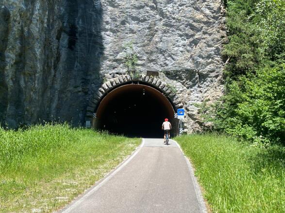 Bitte im Tunnel auf der alten Bahnstrecke Licht einschalten. Ihr kommt trotzdem hoch!