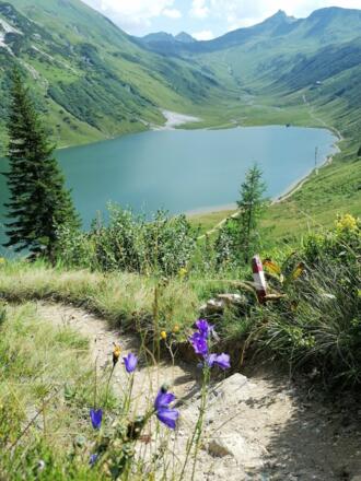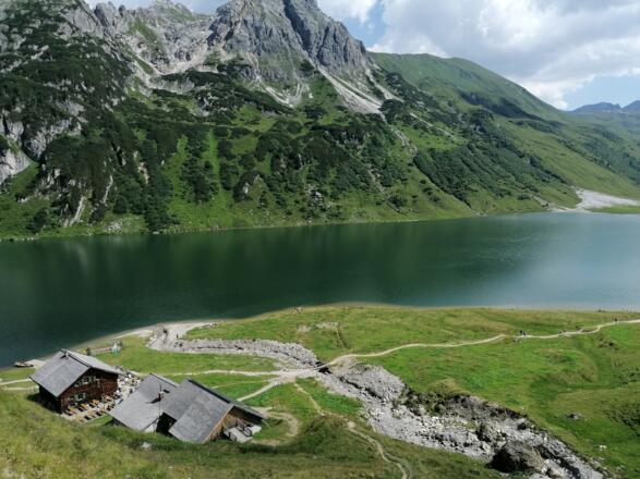 Von der Hütte, die 50m über dem See am Westhang desKarteistörl liegt, hat man einen herrlichen Ausblick auf die Bergwelt mitmehreren Gipfeln von über 2.400m und auf den landschaftlich wunderschönenTappenkarsee, dem größten See der Niederen Tauern.
