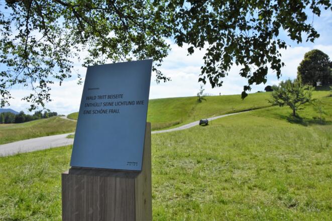 Auf der Wanderung zwischen Bad Bayersoien und Bad Kohlgrub durch das Geizenmoos stehen am Wegesrand 17 Holzstelen mit kurzen lyrischen Texten: HAIKUS. Diese Gedichtsform hat ihren Ursprung in Japan.