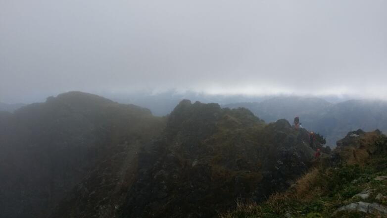 Wir nahmen den Leichtesten. Dies ist ein versicherter, alpiner Steig der Schwierigkeitsbewertung A/B. Herrlich wäre die Aussicht und richtig einfach genussvoll durch Latschen und über Felsmugel steigen wir höher und erreichen schließlich den Gipfel. "Wäre" da wir leider kein Wetterglück hatten und in einer hartnäckigen Nebelsuppe steckten.