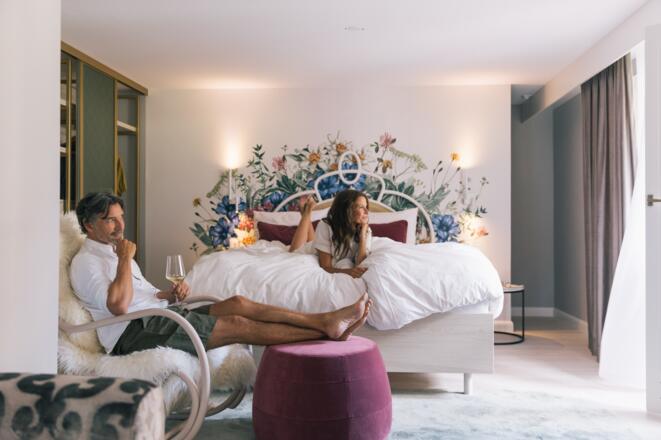 Entspannung pur bietet danach die luxuriöse Landschaft aus In- und Outdoor-Pools, Whirlpools und Saunen, die sich auf den 5500 m² großen Wellness-Bereich verteilen und ungewöhnliche Highlights bereithalten. Darunter ein gemütliches Kaminzimmer mit beheizten Wasserbetten! Jedes der 101 eleganten Gästezimmer und jede der bis zu 250 m² großen Suiten ist modern-romantisch eingerichtet, individuell ausgestattet und verzaubert mit einer traumhaften Aussicht auf die Tiroler Alpen.