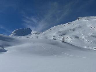 Übliche Skitourengefahren. Absturzgefahr beim Gipfelanstieg.