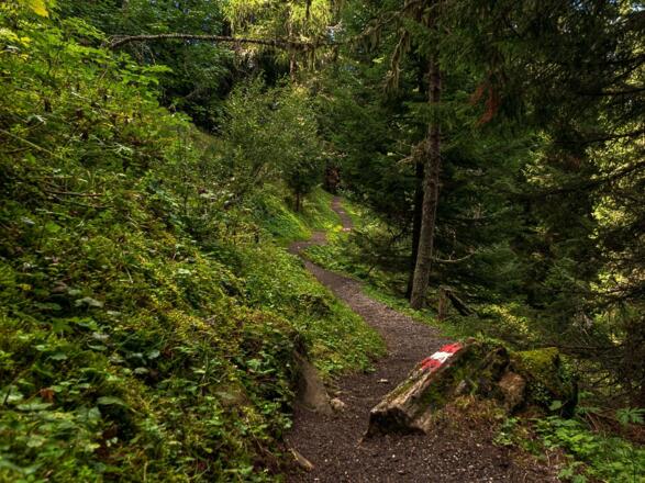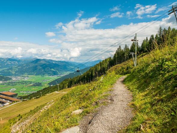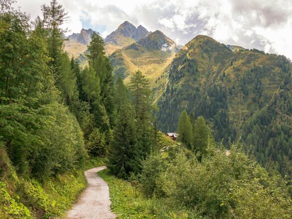 Vom Maiskogel (Höhe ca. 1.540 m) führt der Weg fast eben in westlicher Richtung durch den Wald direkt zur Unterbergalm. Von dort durch schütteren Lärchenbestand bergwärts in nördlicher Richtung zur Glocknerblick Hütte.