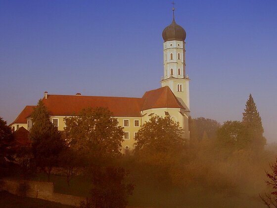 Über einen Feldweg (am E-Werk rechts abbiegen, danach wieder links) erreichen wir Mönchsdeggingen. Durch den Ort hindurch, die Hauptstraße "Albstraße" überquerend geht es vorbei an einem ehemaligem Kloster nach rechts in den Wald.
