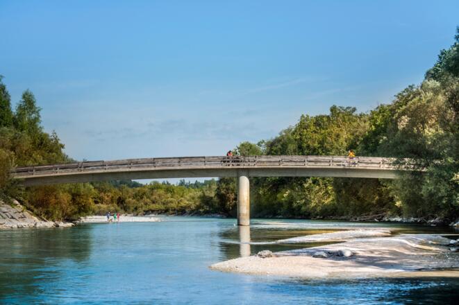 Wir starten die Tour am Bahnhof in Bad Tölz. Die Isar wird an diesem Tag unser Wegweiser sein. Wir fahren rechts am Ufer entlang und haben alsbald Lenggries erreicht. Hier führt die Route über den Toni-Seber-Weg direkt zum gigantischen Sylvensteinspeicher, wo wir erstmal einen obligatorischen Fotostopp einlegen.Entlang des Südufers folgen wir einem kleinen schottrigen Weg, den wir im Sommer mit vielen Badegästen und Spaziergängern teilen (aufgrund kurzfristiger Wasserspiegelschwankungen kann es zu temporären Sperrungen dieses Weges durch das Wasserwirtschaftsamt kommen, Ausweichmöglichkeit entlang des ausgeschilderten Isarradweges entlang der Bundesstraße). Auf dem Weg nach Vorderriss führt der Streckenabschnitt durch ein Wildfütterungsgebiet (Wintergatter Vorderriss). Aus Rücksicht auf die Wildtiere würde ich Euch bitten, in der kritischen Zeit vom 1. November bis 1. April den Streckenabschnitt auf der Forststraße zu meiden und die Umfahrung auf der Bundesstraße zu wählen.In Vorderriss angekommen haben wir die Wahl: weiter auf Asphalt der Mautstraße bis nach Wallgau entlang folgen oder über die Brücke und dann auf Schotter durch ein wahres Gravelparadies fahren? Der Preis sind einige Höhenmeter extra und ein paar steilere Anstiege. Euer Lohn ist das Erlebnis einer einmaligen alpinen Flusslandschaft. Die Entscheidung liegt ganz bei Euch – ihr werdet aber so oder so bald verstehen, warum dieser Abschnitt hier auch gerne „Klein-Kanada“ genannt wird.Die Route führt schließlich nach Mittenwald und Scharnitz. Es geht weiter stetig bergauf, hinein ins Hinterautal. Nur noch wenige Kilometer bis zum Ende unserer Tour, doch landschaftlich sicherlich der schönste Teil, wild und wunderbar: Das Flussbett mit den Kieselsteinen, das türkisgrüne Wasser der Isar, die vielen Steinmännchen und die steilen Felswände des Karwendels. Am Ziel unserer Tour lassen wir das Fahrrad stehen, denn der eigentliche Isarursprung ist nur zu Fuss zu erreichen. Hier fülle ich meine Flasche mit Quellwasser. Was kann es Besseres geben?