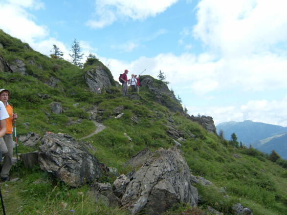 Wandertaxi bis Walchalm 1695 m über das Hochmoor in Richtung Seebachscharte den Rupertiweg 116 B zur Schwarzwand2204 m herrliche Aussicht ins Gasteiner Tal zur Schmaranzalm (bew.) 1768 m nach einer Rast mit Jause weiter den Hytongasteig (Waldgebiet ) zur Fundner Alm1380 m Einkehr und Rast mit Krapfen den Vogeltenn und Vogellehrpfad ins Wanderhotel Zum Stern