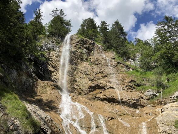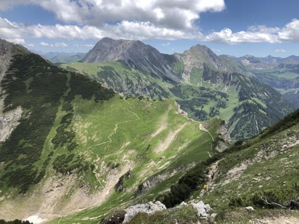 Wir starten am Parkplatz "Auf der Höh" in Hinterstein und laufen oberhalb des Dorfes (Einstieg in den Weg beim "Grünen Hut"!) bis zum Naturbad Prinze Gumpe und weiter hinauf zu den Zipfelsfällen. Über viele Kehren laufen wir stetig bergab bis zur Zipfelsalpe, dort haben wir noch knapp 500 Höhenmeter bis zum Gipfel des Bschießers vor uns (1999 m). Übrigens: Der Bschießer heißt in Österreich Bscheisser! Über den herrlichen Gratweg laufen wir hinüber zum Ponten mit seinem Gipfelkreuz auf dem ausgesetzten Vorgipfel - und schließlich unterhalb der Felsen auf dem Grenzgänger-Weg bis hinüber zum Zirleseck. Dort wandern wir hinab zur Willersalpe, wo uns nach dem Großteil der Tour eine Rastmöglichkeit mit Bewirtung erwartet. Weiter geht's hinab via Wildfräuleinsteig wieder nach Hinterstein.