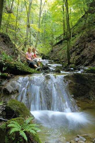 Von der Teisendorfer Tourist-Info über die Lindenallee zum Seniorenheim; kurz davor links durch die Parkanlage vorbei am Brauereigelände zur Alten Reichenhaller Straße; dort nach rechts bis zum Ende der Bebauung; dann nach links durch den Geologischen Lehrgarten vorbei an den Tennisplätzen und dem Waldschwimmbad zu den Fischweihern; weiter nach rechts, die Fahrstraße überquerend - weiter am Waldrand, nach ca. 150 m wechselnd durch die neue Unterführung der Ortsumfahrung auf die Bergseite. Gleich danach links und beim "Marterl" rechts in den Wald - leicht ansteigend bis zum Wasserfall (hier sind im ausgewaschenen Einschnitt die Gesteinsschichten und deren Verwerfung gut sichtbar); dann auf dem Waldweg weiter. Kurz vor der viel besuchten Lourdes-Grotte (erbaut 1890) rechts hinab nach Moosen und nach der Unterführung über den Stettener Weg zurück in den Markt. Im Bereich Eichelgarten bis Moosen sind eine Reihe von Lehrtafeln über die Flora und Fauna unserer Voralpenlandschaft aufgestellt, um deren Beachtung und Schonung wir herzlich bitten.