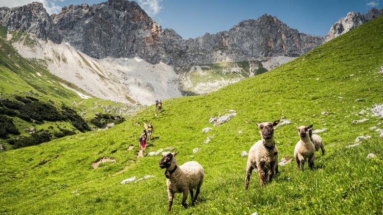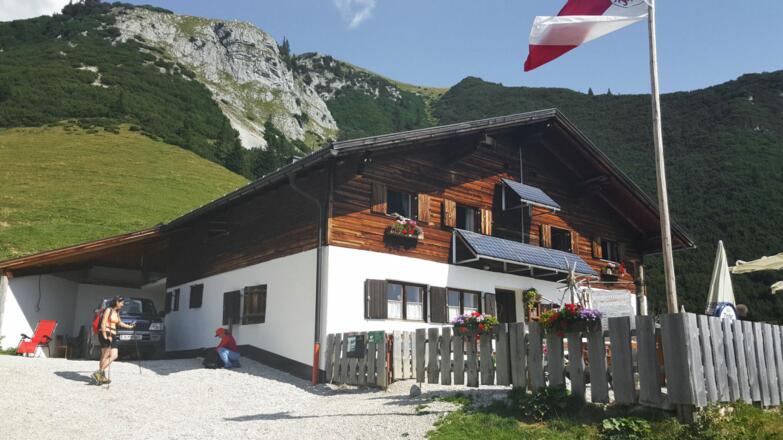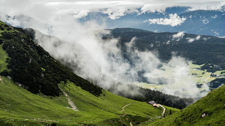 Erleben Sie eine Wanderung mittleren Schwierigkeitsgrades zur Wettersteinhütte-Wangalm, die mit panoramareichen Abschnitten und Aussicht auf die umliegenden Berggipfel beeindruckt.