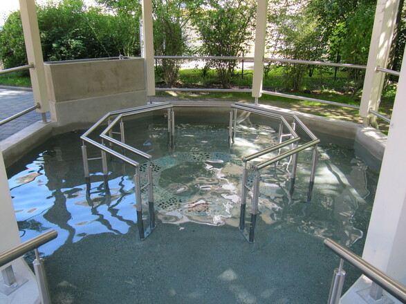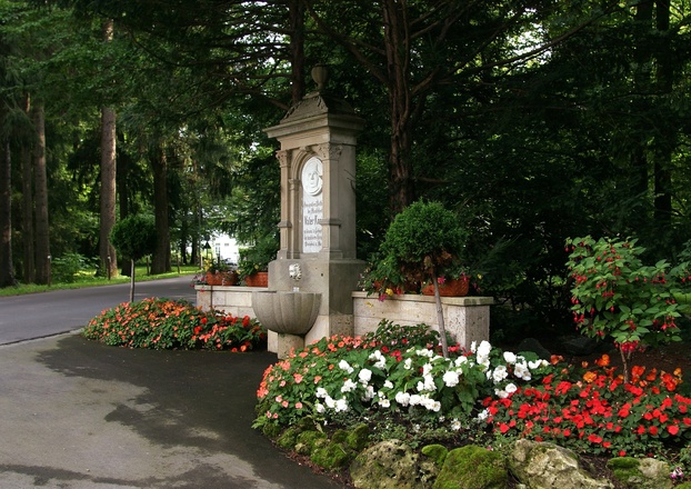 Vom Kurhaus aus gehen wir über die Kneippstraße, Hans-Holzmann-Straße, am Kneippianum vorbei, durch den Rosengarten, zur Schöneschacher Straße, dann rechts an der Kneippanlage "Schöneschacher Straße" (1,5 km) vorbei zum Burgstall "Versunkenes Schloss" (2,0 km Kneippanlage). Auf dem "Kneipp-Waldweg" entlang dem Waldrand gelangen wir zum "Jagdhäusle" (2,9 km). Die Hartenthaler Straße führt uns über den Kurpark (Albert-Schalle-Weg) zur Stadtmitte zurück.