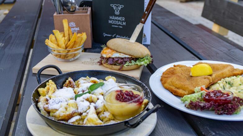 Der Aufstieg ist entspannt und führt über einen breiten Wanderweg bis zur gemütlichen Hämmermoosalm auf 1.417 Metern. Dort serviert die köstliche Traditionsküche allerlei Schmankerln und saisonaleSpezialitäten, während aromatische Hausbrände auf Wunsch auch das Herz wärmen.
