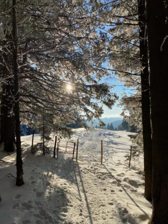 Kurzweilige und aussichtsreiche Tages-Rundtour entlang des Sonneck-Grates zur Burgruine Alttrauchburg. Die Schneeschuhwanderung befindet sich zumeist auf der Südseite des Sonnecks und ermöglicht so einen wundervollen Fernblick in Richtung Allgäuer Alpen Hauptkamm.