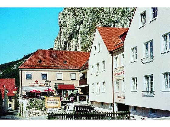 Weiter geht es ins Tagesziel Essing. Hier erklimmt man entweder noch die Burgruine Randeck über dem Ort oder steigt mit einer Höhlenführung hinab in die Tiefen der Tropfsteinhöhle Schulerloch.