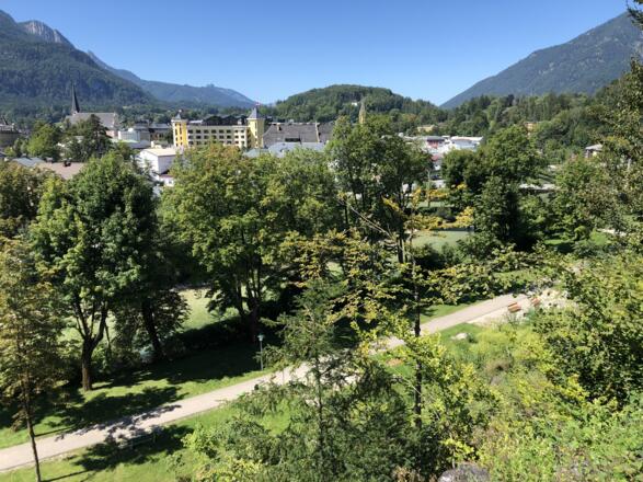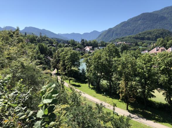 Nach dem Verlassen der Rettenbachalm folgt ein langgezogener Marsch entlang des Rettenbaches bis nach Hinterstein, dem Beginn von Bad Ischl, welches wir nach etwa 1,5h erreichen. Der weitere Abstieg nach Bad Ischl (468 m) gestaltet sich wie ein kurzweiliger Spaziergang durch einen Vorort, von dem aus es immer wieder schöne Ausblicke auf Gebäude und Vermächtnisse aus der Monarchie gibt, die hier in ihrer gesamten Verherrlichung gepflegt wurde. War doch Bad Ischl der liebste Zweitwohnsitz des Kaiser Franz Joseph dem II. Wir erreichen die Traun, die wir ins Stadtzentrum queren. Hier entscheiden wir uns noch für ein gemütliches Mittagessen, bevor wir (wir kennen Bad Ischl bereits) gen Bahnhof schlendern.