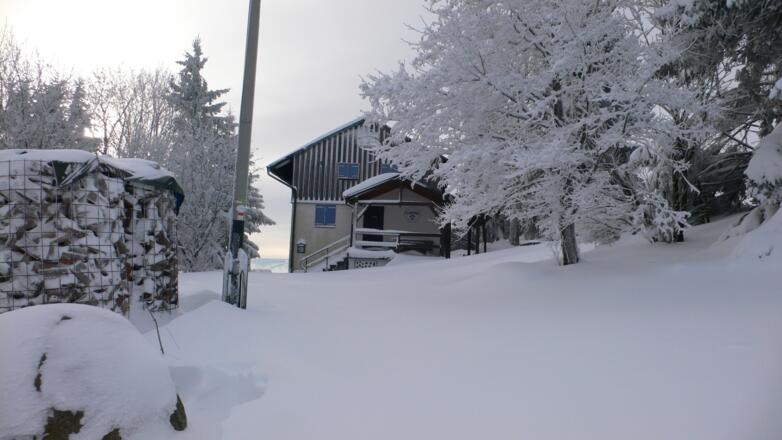 Würzburger Bergbund Hütte vom Parkplatz Schwedenwall