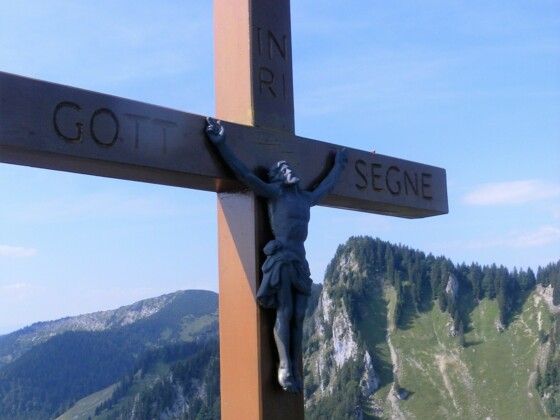 Nun folgen wir dem Gratverlauf knapp rechts seiner Abbruchskante. Bei einer Verzweigung links am Grat bleiben. Das Gipfelkreuz der Zellerwand ist schnell und unschwer erwandert.