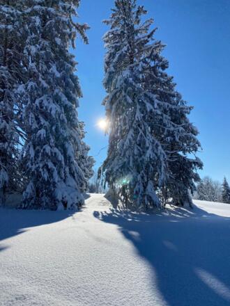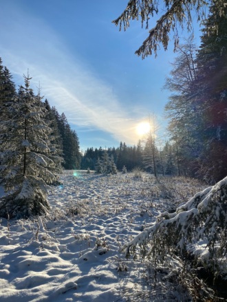 Wunderschöne und leichte Schneeschuh-/Bilgeriskiwanderung mit wenig Steigungen und Gefälle. Absolute Abgeschiedenheit und Einsamkeit kennzeichnet den Weg über die Hochmoore des Hellengerster Hochplateaus.