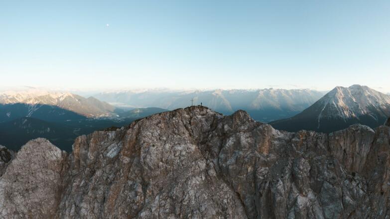 Es gilt zunächst, einige steile Höhenmeter zu überwinden, die sich aber spätestens am Scharnitzjoch bezahlt machen. Nach zirka 3 Stunden erreicht man es und darf sich zum ersten Mal über grandiose Blicke auf das Gaistal freuen. Auch die Wangalm und Wettersteinhütte kann man von hier aus nun sehen. Weiter geht es über die kleine Erinnerungshütte (nicht bewirtschaftet) Richtung Gipfel der Gehrenspitze. Der Weg wird schmaler und ist teilweise ausgesetzt. Gute Trittsicherheit und Schwindelfreiheit sind hier notwendig. Am Gipfel angekommen sind die Panorama-Blicke überwältigend: man überblickt das Leutaschtal, das Karwendelgebirge und auf die Hohe Munde.