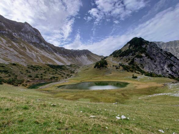 Ab jetzt führt ein schmaler Pfad durch das nun schöne Hochtal. Dabei folgt man immer dem sich teils verzweigenden Bach bis man die Brücke über den Krottenbach erreicht.